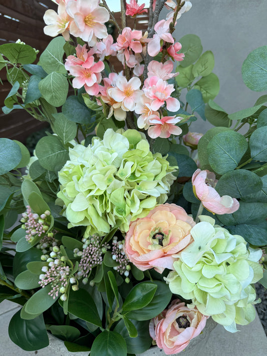 Coral Pink and Green Spring Drop-In Arrangement
